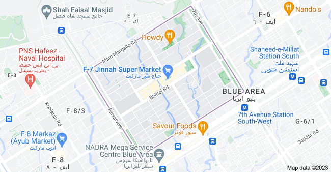 The f-7 sector is located next to sector F-6 which is near Pak Secretariat and PM House. The 7th Avenue Road is the adjoining area between F-7 and F-6 on the eastern side of F7. F-8 sector also lies on its western side with Faisal Avenue Road (Faisal Mosque).
